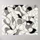 A monochrome abstract pen and ink sketch; irregular division of a white ground