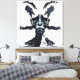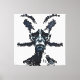 A monochrome abstract portrait featuring a distorted face in shades of dark blue, black, and grey. The large, shadowed eyes and melancholic expression evoke deep emotion, while intricate, dark streaks form an organic, skeletal framework around the face. The contrast against a light background enhances the eerie, surreal quality, giving the artwork a pensive and mysterious mood.