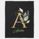 A monogram greenery eucalyptus gold glitter fleece blanket