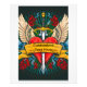 In this captivating artwork, a heart takes flight, cradled by delicate wings. The word "MUM" graces its centre, a testament to maternal devotion. A sword pierces through the heart, symbolizing sacrifice and unwavering protection. Surrounding blooms of red roses whisper of love's endurance. This piece, reminiscent of traditional tattoo artistry, weaves together strength, tenderness, and eternal bonds.