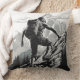 A mountaineer climbs a mountain throw pillow