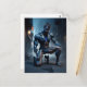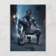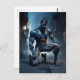 A muscled man with one knee on the ground seems to postcard