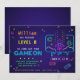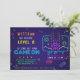 Spice your birthday celebration in the glow of neon! This invitation sets the scene for a gaming-themed party, lit up with neon colours like orange, white, yellow, blue, teal, pink, and green. The design hints at a thrilling gaming experience with a neon spaceship rocket zooming across a starry arcade-style backdrop.