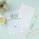 A New Chapter begins watercolor floral book boy blue baby shower bingo game card. Celebrate the arrival of a baby boy with this charming book-themed shower design. Featuring a beautifully arranged row of books, delicate mason jars with flowers and butterflies and a soft blue watercolor background, it radiates literary charm. Perfect for book lovers, this exquisitely designed card is a treasured keepsake for this special occasion.