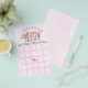 A New Chapter begins watercolor floral book girl pink baby shower bingo game card. Celebrate the arrival of a baby girl with this charming book-themed shower design. Featuring a beautifully arranged row of books, delicate mason jars with flowers and butterflies and a soft pink watercolor background, it radiates literary charm. Perfect for book lovers, this exquisitely designed card is a treasured keepsake for this special occasion.