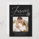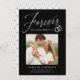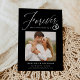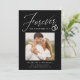 Share the news of your engagement with these elegant photo engagement announcements! The announcements feature the phrase "Forever has a nice ring to it" in a white calligraphy script accented by an illustration of wedding rings on a black background. Your square photo is displayed near the centre of the design with your names and additional details shown below. The modern engagement announcement reverses to display a white and black geometric design.