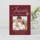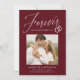Share the news of your engagement with these elegant photo engagement announcements! The announcements feature the phrase "Forever has a nice ring to it" in a white calligraphy script accented by an illustration of wedding rings on a burgundy background. Your square photo is displayed near the centre of the design with your names and additional details shown below. The modern engagement announcement reverses to display a white and burgundy geometric design.