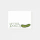 Note features an original marker illustration of a crunchy green dill pickle. Simply personalize with your information.