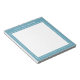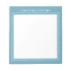 A note from... personalized stationery in a modern, simple style with dot-dash border in fountain blue and white.