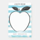 This teacher post it note features a black and white drawing of an apple on a blue watercolor striped background. This is a perfect gift for any teacher. Custom text allows you to personalized with the teacher's name.