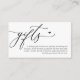 Celebrate the beginning of your journey together with our elegantly crafted "gifts" wedding invitation enclosed card in black and white theme. Featuring a sophisticated blend of modern script and romantic allure, each card is meticulously designed to convey the essence of your special day. Perfectly suited for couples seeking a unique way to share their honeymoon dreams, wishing well, cash, this card invites your loved ones to contribute towards unforgettable experiences. Whether nestled in a luxurious envelope or presented alongside your wedding invitations, our card adds a touch of enchantment to your celebration, promising cherished memories that last a lifetime. Designed by TeeshaDerrick.