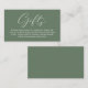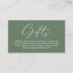 Celebrate the beginning of your journey together with our elegantly classy greenery forest sage green crafted "gifts" wedding invitation enclosed card. Featuring a sophisticated blend of modern script and romantic allure, each card is meticulously designed to convey the essence of your special day. Perfectly suited for couples seeking a unique way to share their honeymoon dreams, this card invites your loved ones to contribute towards unforgettable experiences. Whether nestled in a luxurious envelope or presented alongside your wedding invitations, our card adds a touch of enchantment to your celebration, promising cherished memories that last a lifetime. Designed by TeeshaDerrick.