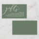 Celebrate the beginning of your journey together with our elegantly classy greenery forest sage green crafted "gifts" wedding invitation enclosed card. Featuring a sophisticated blend of modern script and romantic allure, each card is meticulously designed to convey the essence of your special day. Perfectly suited for couples seeking a unique way to share their honeymoon dreams, this card invites your loved ones to contribute towards unforgettable experiences. Whether nestled in a luxurious envelope or presented alongside your wedding invitations, our card adds a touch of enchantment to your celebration, promising cherished memories that last a lifetime. Designed by TeeshaDerrick.