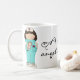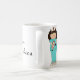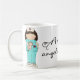 This mug features a cute graphic of a female nurse with hearts in her pocket and holding a teddy bear. The phrase states, " A nurse is an angel in comfy shoes." Shown on the basic white mug but would be nice on any of them and easily customized.