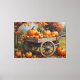 a painting of pumpkins on a cart canvas print