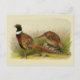 Coloured Drawing of a Ring Necked Pheasant rooster looking over his hen while she pecks for seeds in the clearing of a grass filled prairie. The Rooster is a rainbow of colours including green, yellow, oranges, blues, browns and whites. A pretty Upland Game bird.