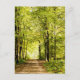 A pathway covered by leaves in a magica forest postcard
