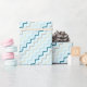 This image features a white background with a pattern of blue and white zigzag lines. The pattern is symmetrical, creating an abstract net-like design that wraps around the entire image.