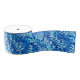 Ribbon in a pattern of stylized, seaweed-inspired fronds in shades of icy blue, gracefully intertwining against a rich cobalt background, for a dynamic, marine-themed design