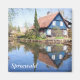 This souvenir magnet features a painting of a typical house and canal in Lehde, Spreewald, Brandenburg, Germany.