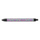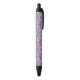 A pen with a black tip and clip, featuring a colorful design that resembles stained glass with vivid pink, blue, and green geometric patterns. The pen is shown with both front and bottom views against a plain white background, highlighting its vibrant decorative surface.
