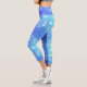 A person wearing vibrant blue leggings adorned with large, lighter blue polka dots. The leggings are fitted, with a gradient effect from waist to hem.