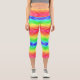 A person wearing vibrant, rainbow-coloured legging