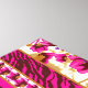• Middle Band: Contains an animal print in pink and white, bordered by two thin golden stripes.