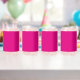 The design displays a pattern consisting of small white dots arranged in diagonal rows on a pink background. Each dot is equidistant from its neighbouring dots, creating a uniform and orderly grid-like pattern. The design is simple yet visually engaging due to the contrast between the white dots and the vibrant pink backdrop. This type of pattern could be used in various design contexts such as fabric prints, wallpapers, or backgrounds for graphic elements due to its repetitive and neutral geometry that doesn’t distract from overlaying content.