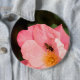 A pink rose flower and the fly insect 6 inch round button