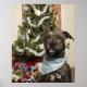 A pit bull posing for a Christmas portrait. Poster