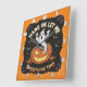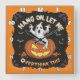 A playful ghost pondering above a jack-o'-lantern square wall clock