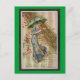 This is a vintage postcard that has a woman’s picture with an open umbrella because it is raining hearts. With green as the background colour this is a one of a kind postcard. The message is a prayer to St. Valentine that is asking for the person to be showered with many hearts. This postcard is general enough that you can send it to anyone.
