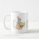 a rabbit in a dress with a basket of flowers coffee mug