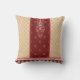 a red and beige carpet with a red border throw pillow