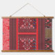 Top Section: It has a red background with black and white vertical stripes, interspersed with intricate patterns that resemble traditional or tribal designs.
