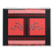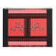 • Top Section: Features a mix of floral and geometric shapes in black, white, red, and gold colours.