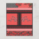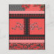 • Top Section: Features a mix of floral and geometric shapes in black, white, red, and gold colours.