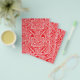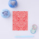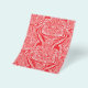 The design features a symmetrical, abstract pattern with intricate details. The design is predominantly red with black accents and has a kaleidoscopic effect due to its mirrored symmetry on both vertical and horizontal axes. The swirling shapes resemble floral or paisley elements, giving it an organic feel. It looks like it could be a tapestry or curtain, hanging from the top.