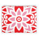 Le design se compose d'un motif symétrique mêlant rouge et blanc. Au centre, il y a un design floral stylisé avec des couches de pétales rayonnant vers l’extérieur. Ce motif central est entouré d'éléments tourbillonnants et de formes décoratives supplémentaires, créant un aspect équilibré et harmonieux. L'utilisation de seulement deux couleurs rend le design complexe se démarque magnifiquement.