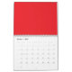 a red background with a white border calendar