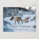 A reindeer pulling Santa Claus and his sleigh Holiday Postcard