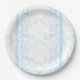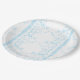A rug featuring a blue and white creative arts mot paper plate