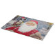 A santa claus holding a cute Border Collie and chr Cutting Board