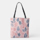 A seamless pattern with various stylized leaves in shades of pink, grey, and white on a light pink background tote bag