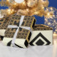 A set of japanese style seamless patterns, tribal and geometrical symbols, in a black and gold palette