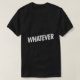 A fun and quirky shirt design featuring bold text that simply says "Whatever." Perfect for those who want to make a statement with their outfit.