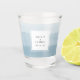 Verre Mariage Aquarelle Bleu. Ce élégant et chic verre à fond bleu mariage présente un arrière - plan sombre à l'aquarelle avec une mariée à la frontière blanche, les noms du marié et la date du mariage. Les éléments correspondants se trouvent dans la collection Aquarelle Ombre.