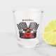 Race Car Design Shot Glass, avec texte personnalisable.