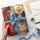 A skull whose presence inspires both awe and fascination. Its skull is marked by time, bearing a radiant treasure in its centre, a gemstone that pulsates with shimmering colours and holds the secret of life and death. The skull's eye sockets glow like two glowing coals, bright red and piercing, as if they could see the deepest secrets of the soul. A wreath of filigree leaves, whose green veins contrast with the pale bone. This living embrace symbolizes the eternal cycle of life and death, while an artfully crafted chain encircles it - a sign of the inseparable connection between the worlds.